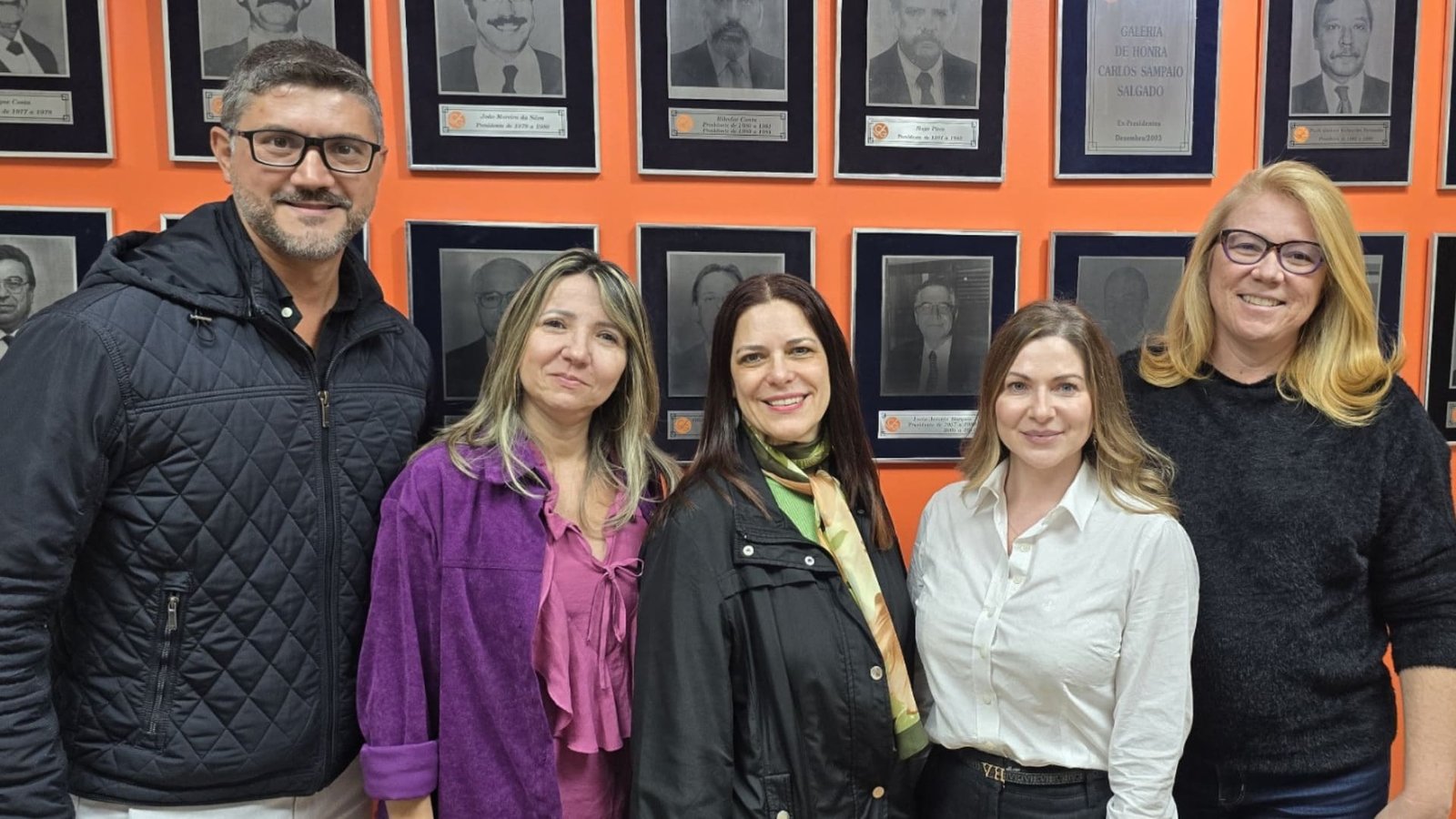 Da esquerda para direita, a diretoria do CVG-RJ: Leonardo Villela, diretor financeiro; Leila Nogueira, vice-presidente; Sonia Marra, presidente; Tatiana Antoniazzi, diretora social e Jacqueline Sorensen, diretora de ensino.