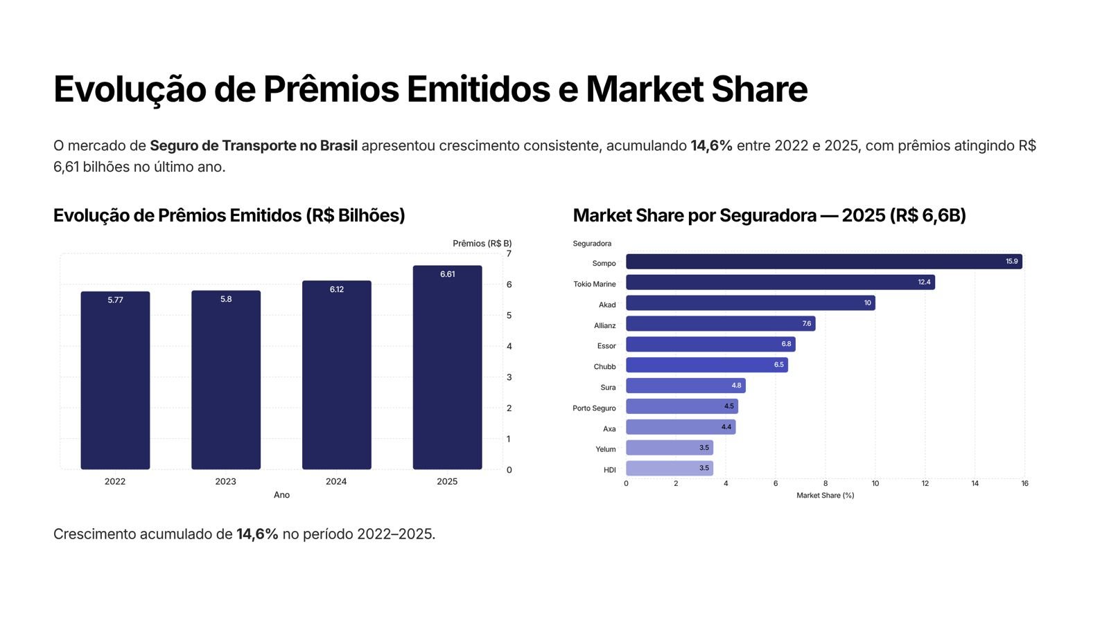 O retrato competitivo do setor também ajuda a entender seu peso. Ainda segundo o Painel de Estatísticas da SUSEP, a produção de 2025 ficou distribuída entre grupos relevantes, com liderança da Sompo, R$ 1,05 bilhão, seguida por Tokio, R$ 0,82 bilhão, Akad, R$ 0,66 bilhão e Allianz, R$ 0,50 bilhão, além de outros players relevantes como Essor, Chubb, Sura, Porto, AXA, Yelum e HDI. É uma carteira consolidada, com escala e participação efetiva na infraestrutura econômica do país.