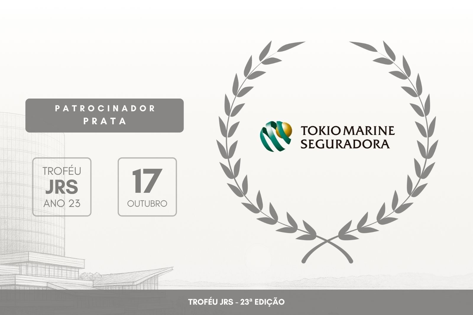 Mais uma grande marca integra o time de apoiadores do 23º Troféu JRS: a Tokio Marine Seguradora é Patrocinadora Prata desta edição que celebra os destaques do setor de seguros.